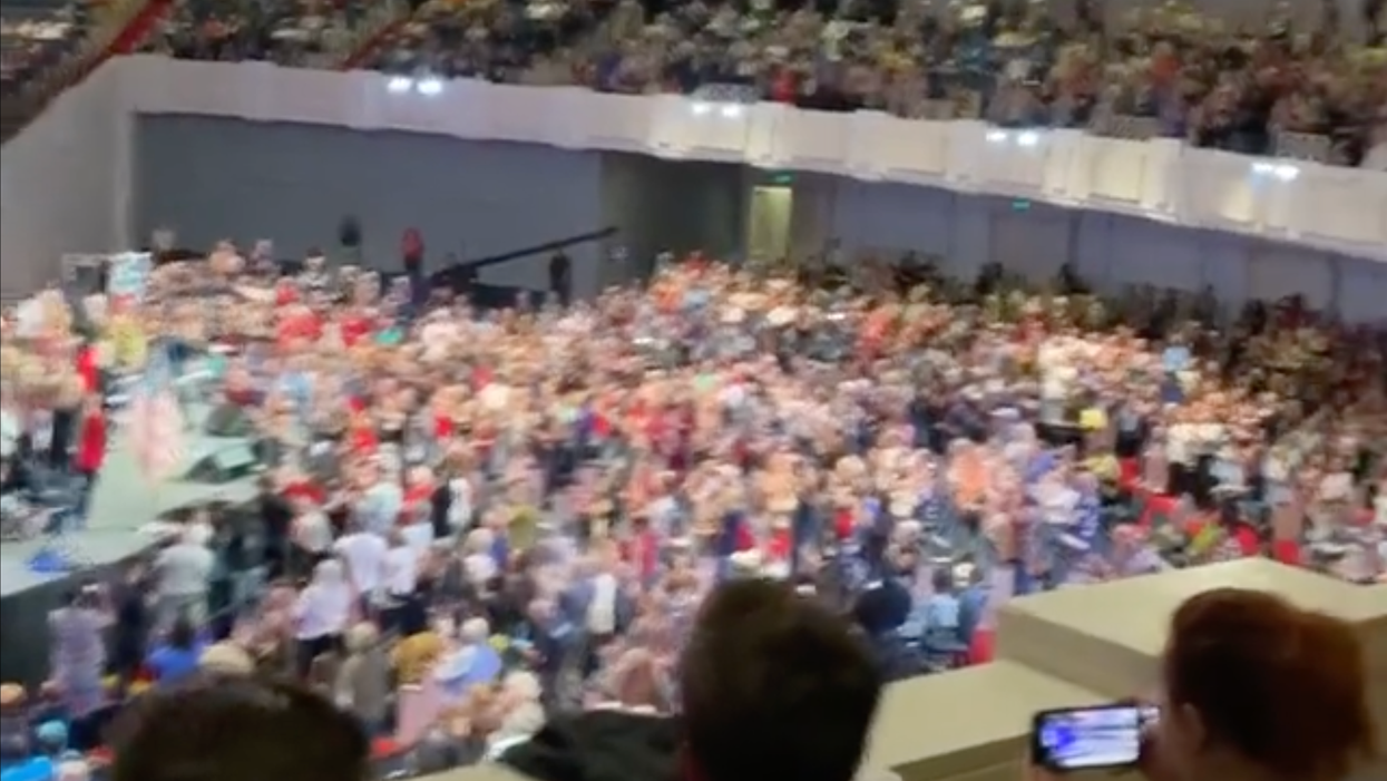 Here\u2019s another angle. This wasn\u2019t a spontaneous crowd chant. This was led from the stage.pic.twitter.com/tWh9vvasau