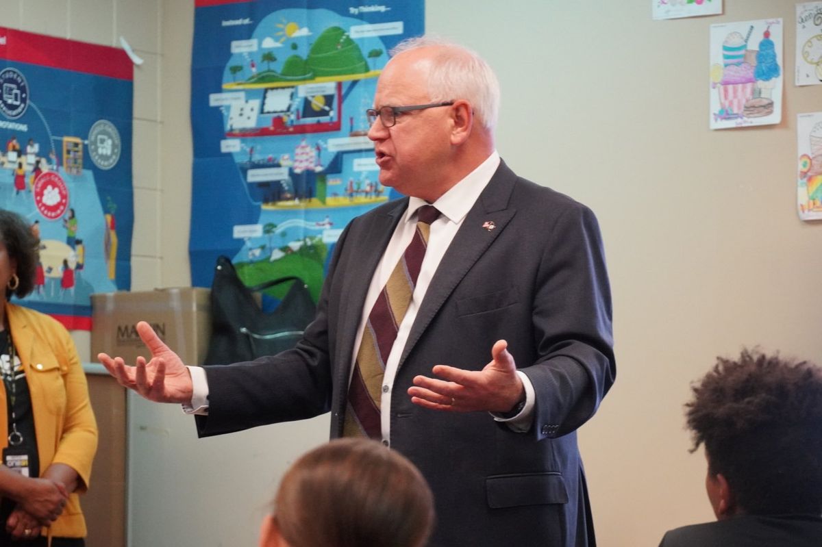 Walz continued, "We're used to bad things happening fast and good things taking a long time. I'd make the case to the people of Iowa: The governor and this Republican majority is the only thing standing between you and nice things, like paid family leave if you have to get chemotherapy treatment. You shouldn't have to be worried about dying from that. And we care deeply about making sure our children are served on this. Not just forcing birth and rapes and incest issues or whatever else is trying to be done with this. But caring for them deeply, providing their families with healthcare — prenatal, postnatal health care and food. I think there are two examples of the direction we want to go. One was inclusive, hopeful, and I would make the case. I think it was summed up in one picture, I announced it at a school — Webster Elementary School — that their classmates would all be getting breakfast and lunch without having to worry about it and the children spontaneously hugged us. That was Minnesota session, I don't know if you got an image of the Republicans."